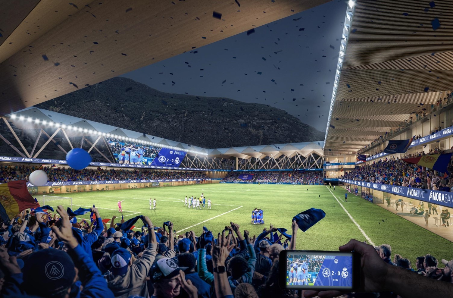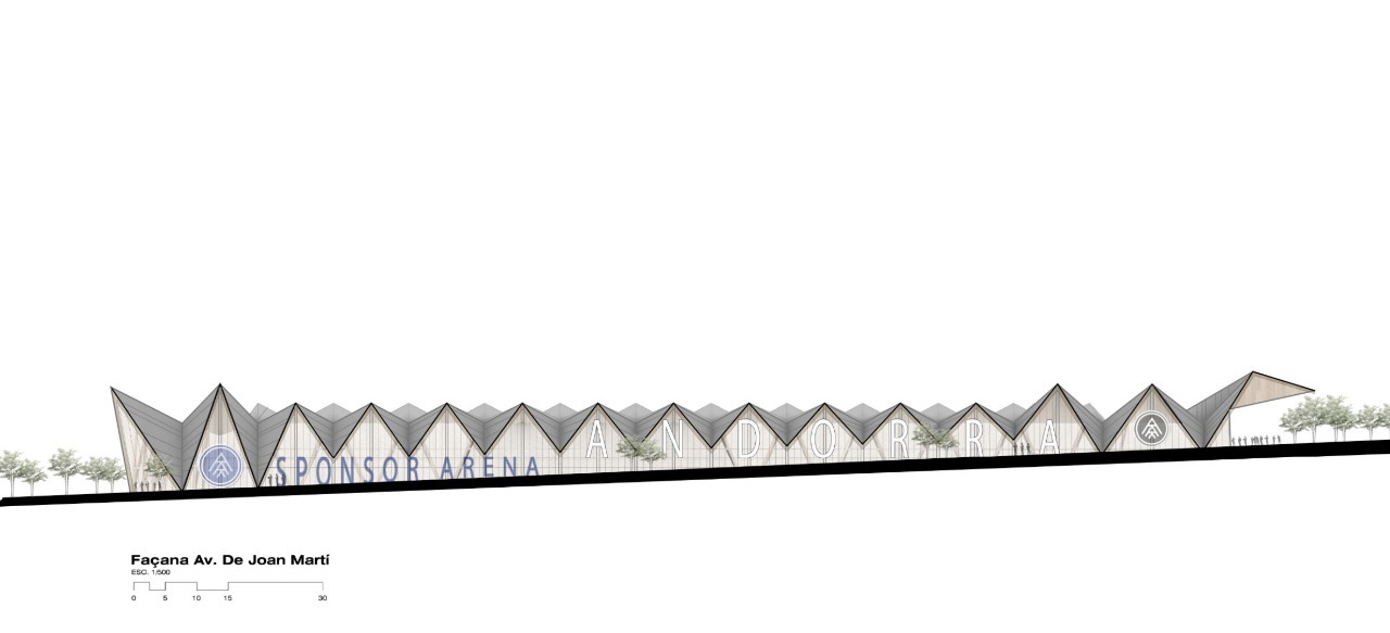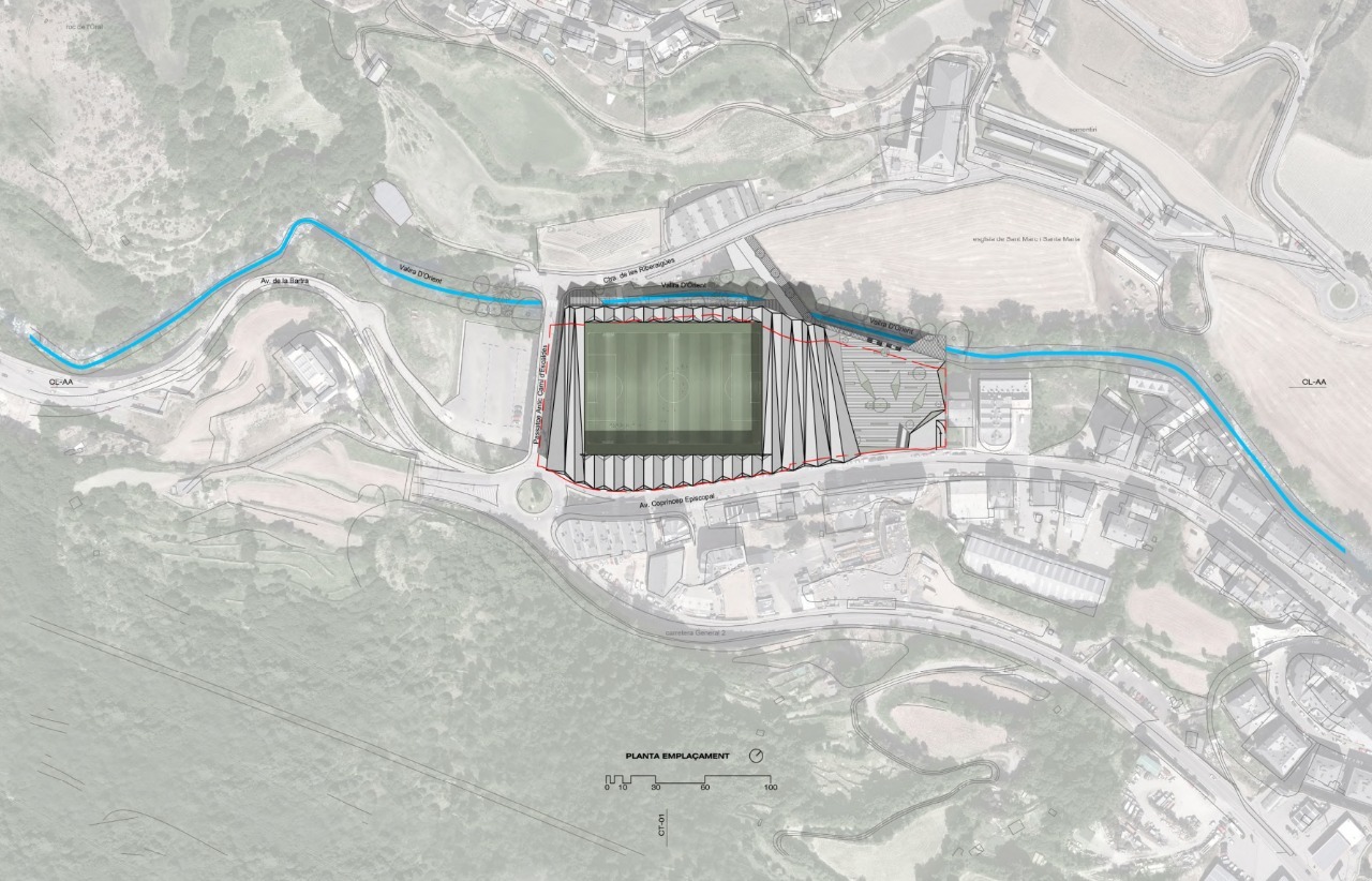 Projecte guanyador en el concurs per a dissenyar el nou estadi del Futbol Club Andorra.